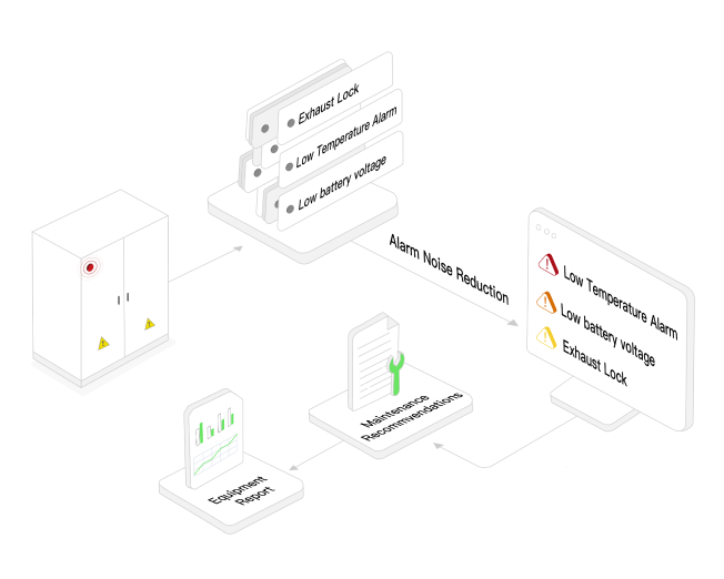 We monitor equipment status in real time, filtering and interpreting large volumes of alerts to provide clear insights into underlying causes and potential risks. This enables you to determine appropriate next steps, prevent losses from unplanned downtime, and systematically increase equipment uptime.