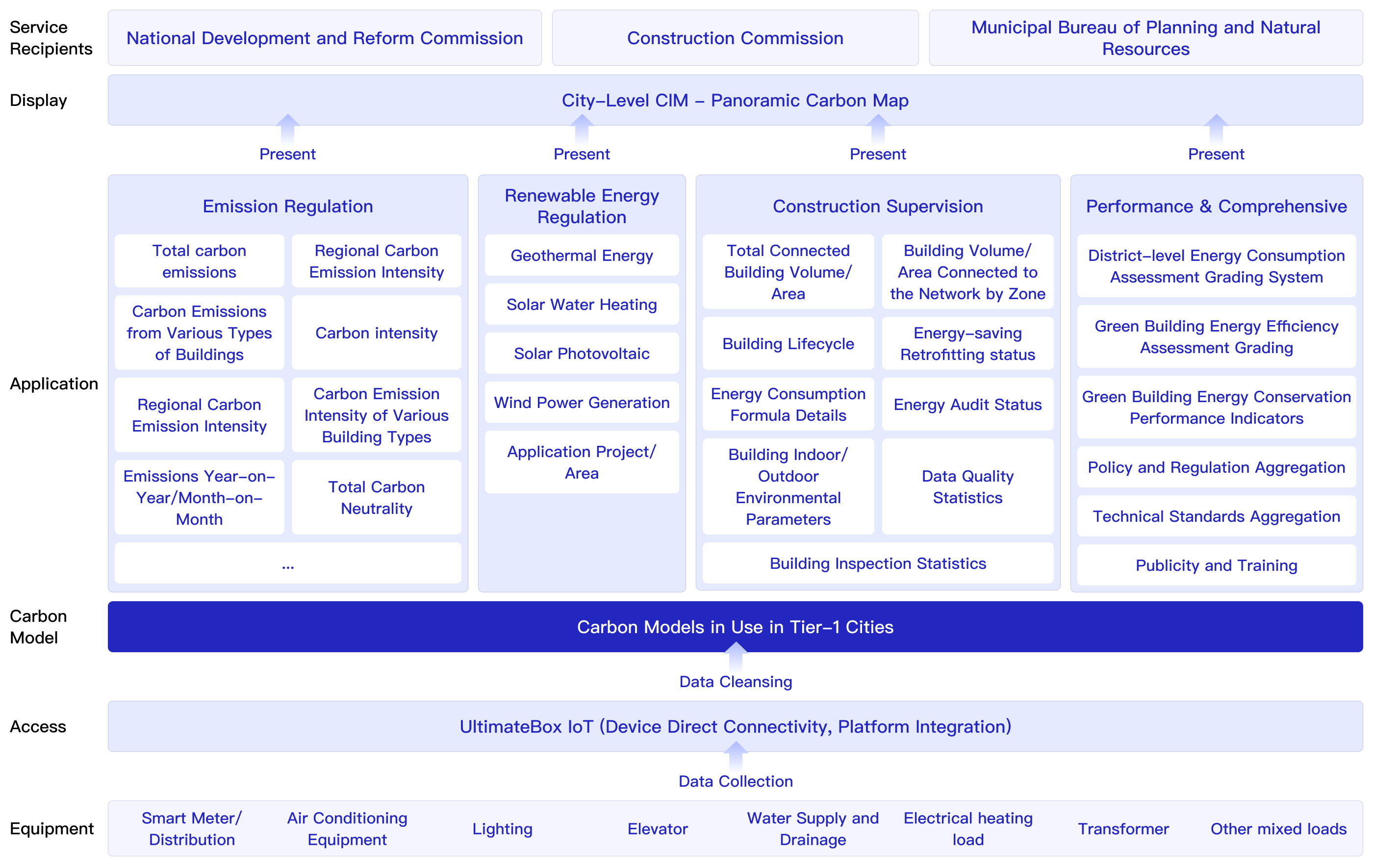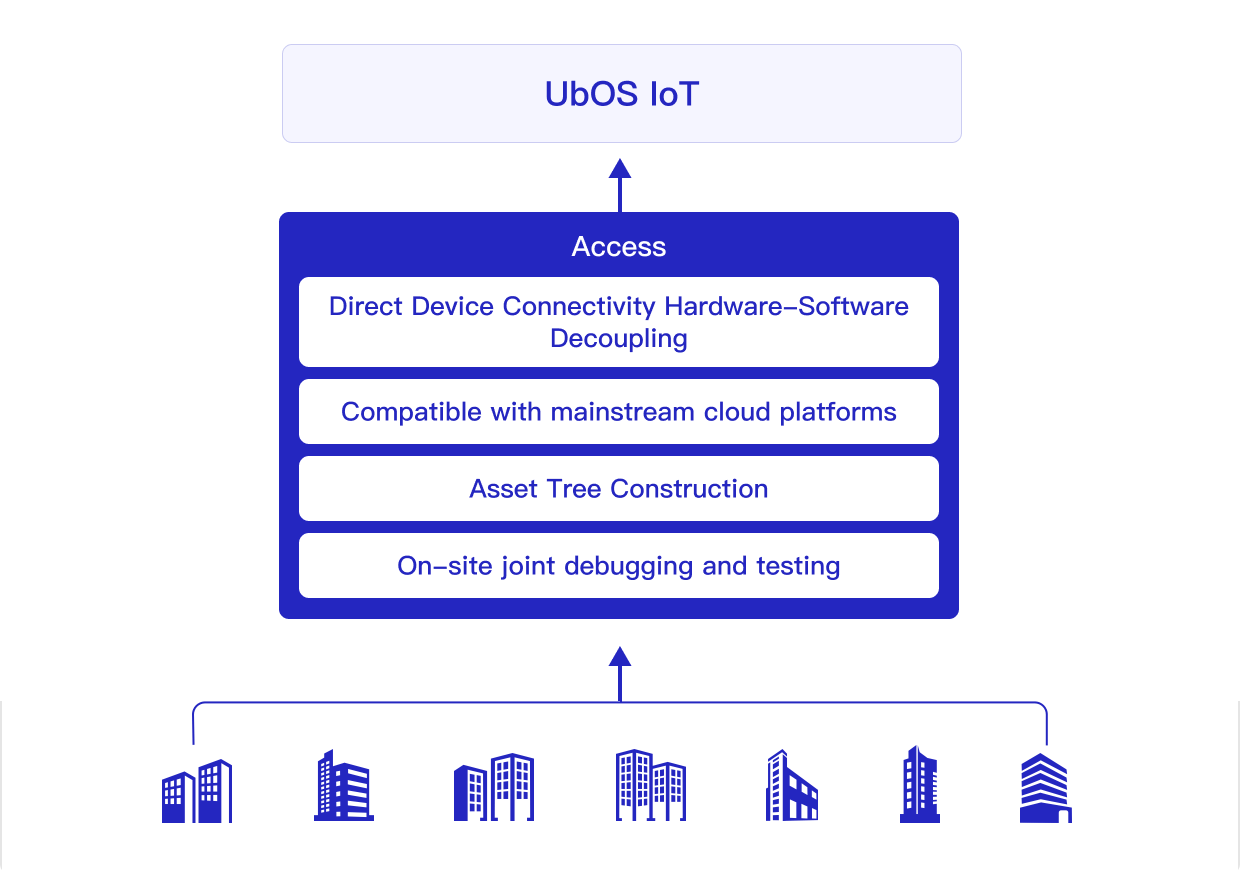 To address citywide building connectivity requirements, we utilize the UbOS IoT platform as the intermediary layer between business systems and sensing devices. Serving as a critical bridge, the platform provides stable and reliable data subscription services to northbound applications while enabling extensive device and data integration downstream, forming a comprehensive city-level sensing network.